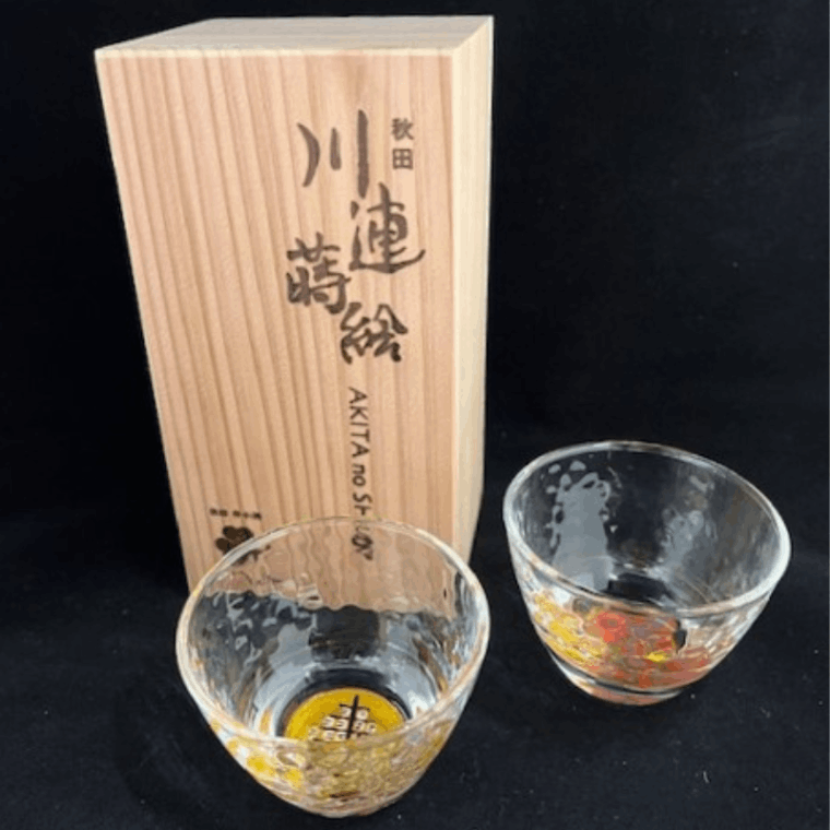 秋田川連蒔絵グラス「竿燈まつり」フリーグラス(秋田杉箱入り)