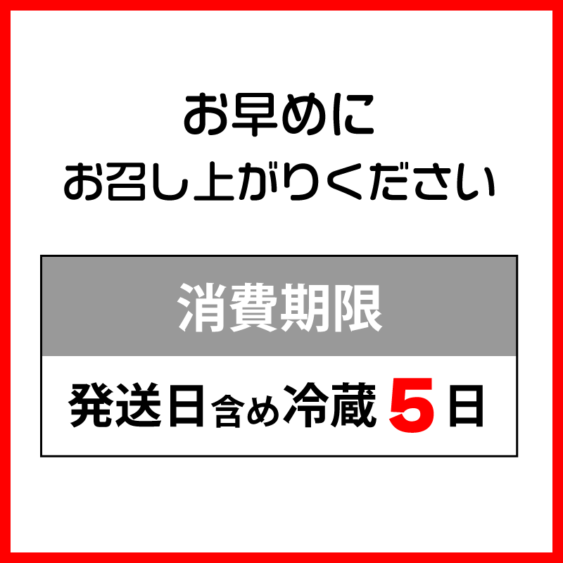 | 賞味期限 | 消費期限:発送日を含む5日間 |