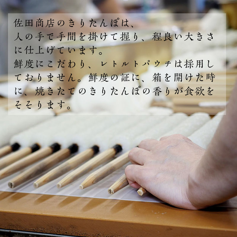 佐田商店のきりたんぽは、人の手で手間を掛けて握り、程良い大きさに仕上げています。