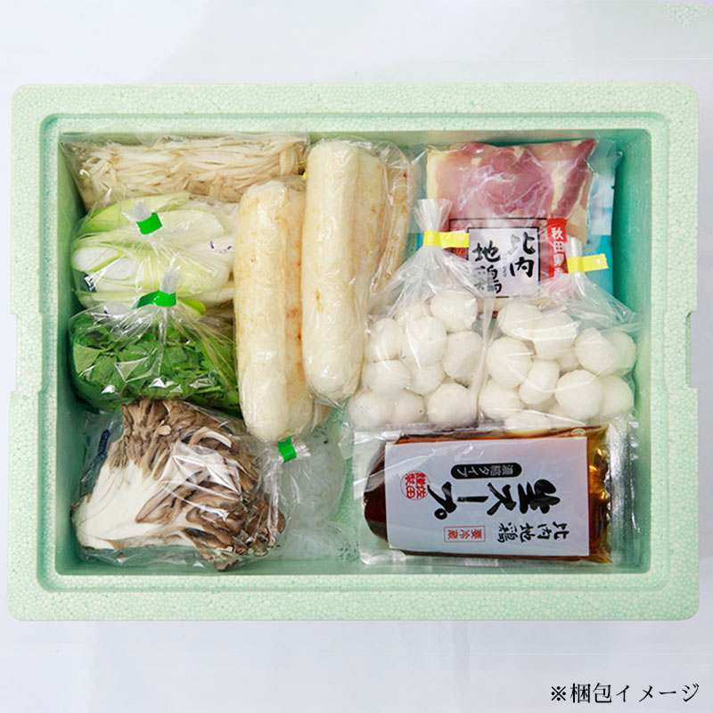 | 内容量 | 3100g (きりたんぽ8本、だまこもち320g、比内地鶏240g、比内地鶏生スープ180ml 4袋、芹100g、舞茸100g、ささがきごぼう100g、ねぎ200g、糸こんにゃく200g、鳥海山自然水500ml) |
