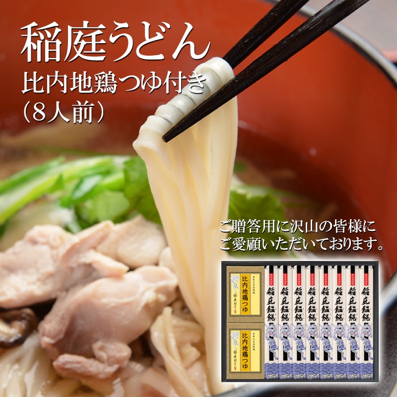 稲庭うどん 比内地鶏つゆ付きギフト(8人前)URT-8