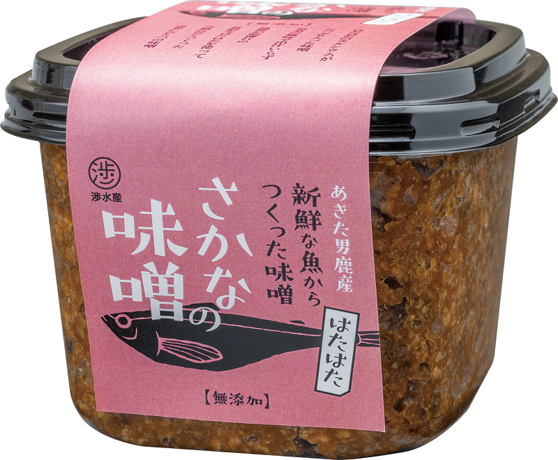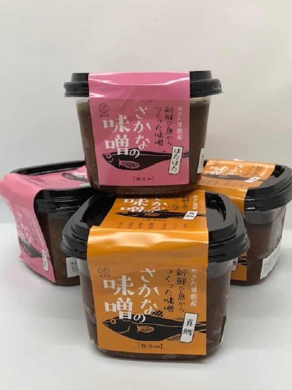 - 当社代表が自ら水揚げした男鹿産のはたはた、真鱈を新鮮なうちに手作業で加工しています。添加物や合成着色料などは一切使用せずに、魚の美味しさエキスを余すことなく混ぜ込んだ「さかなの味噌」世界に一つの味噌です。
