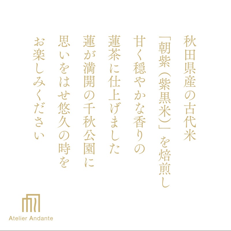 | 原材料 | 古代米「紫黒米朝紫」(秋田市産)、蓮葉(国産) |