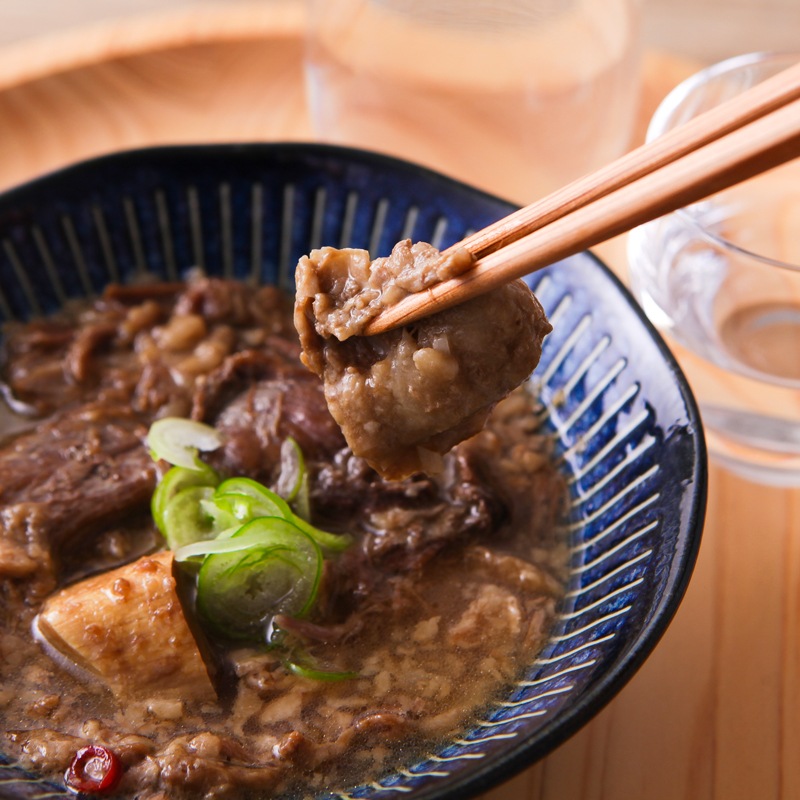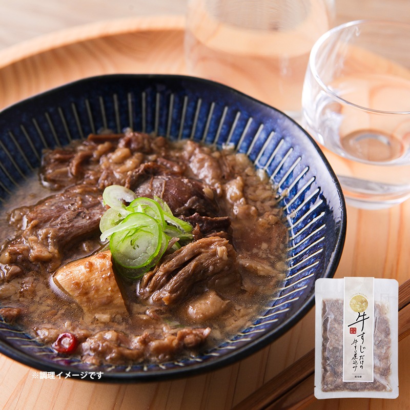 | 原材料 | 牛すじ(国産)、しょう油、みりん、日本酒、砂糖、しょうが、梅干し、赤とうがらし、調味料 |
