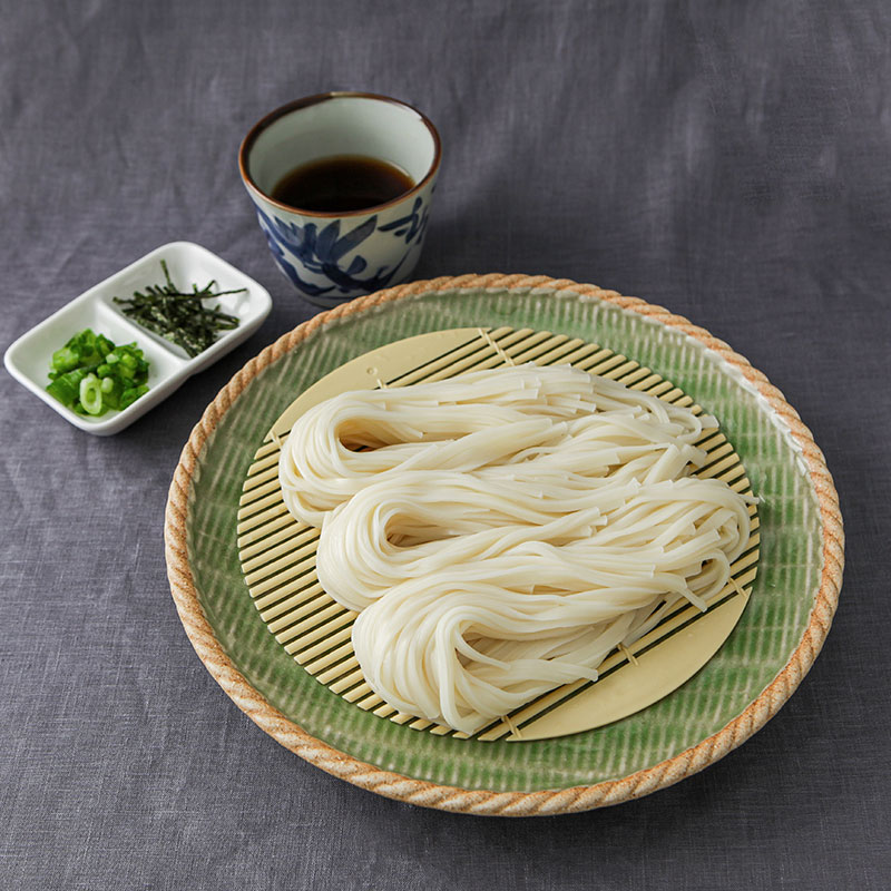 のどごしのよい稲庭うどんと、無添加・無着色のいぶりがっこです。