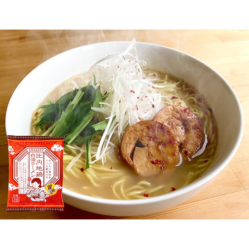 比内地鶏のうまみを生かした本格的なスープと、即席麺なのに麺のクオリティにもこだわっているのが特徴。