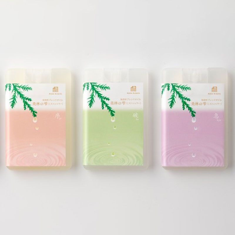 | 主成分 | ■「序」 白神山水、無水エタノール、ポリソルベート20、秋田杉葉精油、オレンジスイート ■「破」 白神山水、無水エタノール、ポリソルベート20、秋田杉葉精油、ハッカ ■「急」 白神山水、無水エタノール、ポリソルベート20、秋田杉葉精油、ラベンダー |
