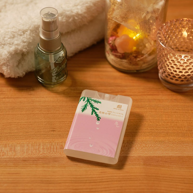 - いつでも瞬間森林浴!秋田杉の葉から抽出した癒しのブレンドオイルを使用しています。