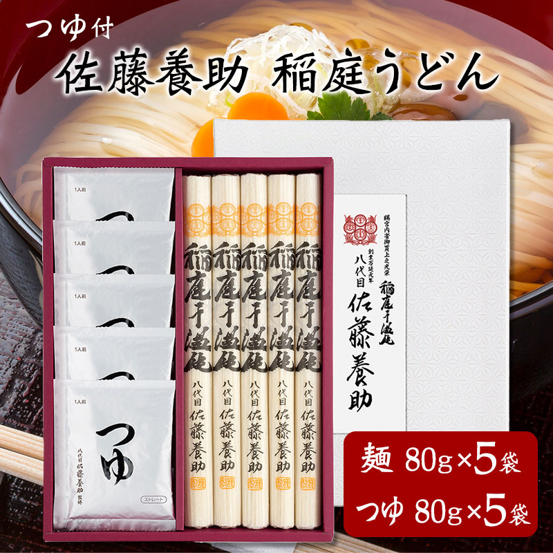 佐藤養助商店 稲庭干温飩 紙箱入 WY30N (めん80g×5袋、つゆ80g×5袋)