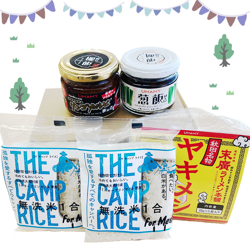 | 製造者 | THE CAMP RICE無洗米1合:株式会社大潟村同友会 他:株式会社千秋食品 |