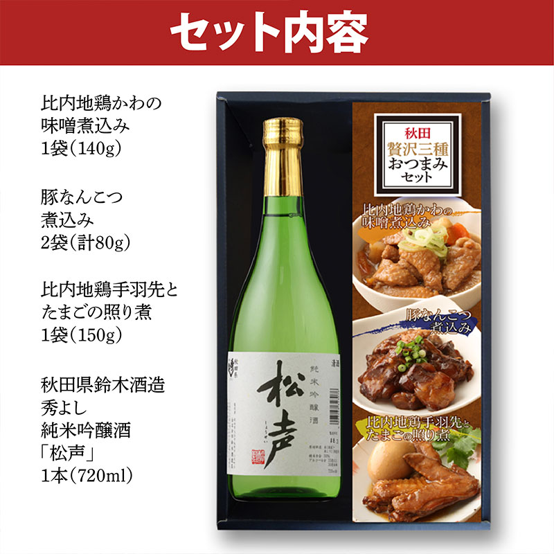 秋田の贅沢 3種おつまみ&秀よし純米吟醸「松声」セット TM-S
