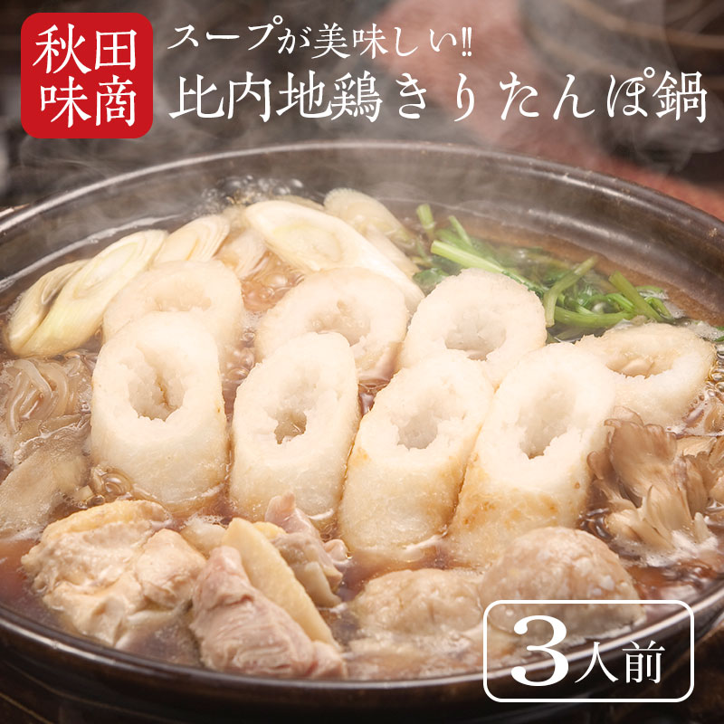 | 原材料 | スープ:鶏ガラ(秋田県産)、醤油(小麦・大豆を含む)、みりん、ごぼう、砂糖、食塩、米酢、乾燥舞茸、昆布、酵母エキス きりたんぽ:うるち米(秋田県産)、食塩 鶏肉(秋田県産) 鶏つみれ:鶏肉(秋田県産)、鶏卵、ねぎ、パン粉(小麦を含む)、ばれいしょ澱粉、食塩、おろししょうが 他具材: ねぎ(国産) 、 ごぼう(国産) 、 舞茸(国産)、 セリ(国産) ※原材料の「鶏ガラ、鶏肉」は比内地鶏を使用。 |