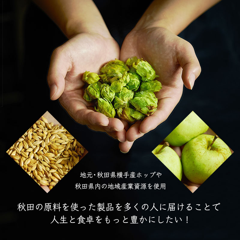 「秋田の素材を活かした製品づくり」をテーマに地元産原料にこだわった新鮮なクラフトビール・ハードサイダー缶5本飲み比べセットにしてお届けします。