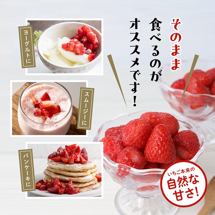 いちご農園で採れた完熟いちごをバラ冷凍し、真空個包装にてお届け!
