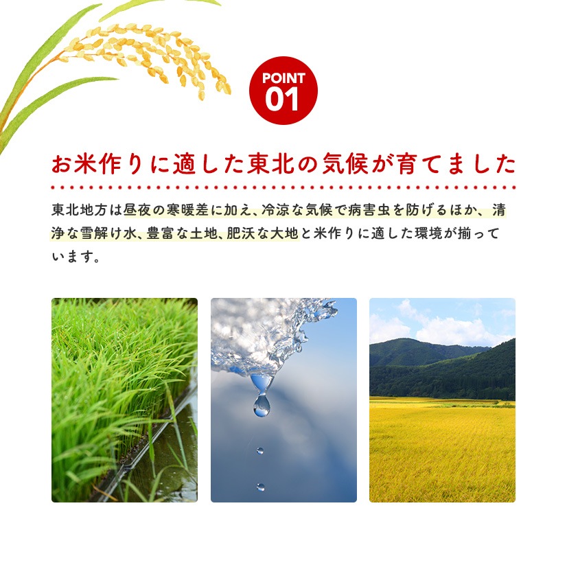 - 東北地方で収穫されたお米をブレンドしています。