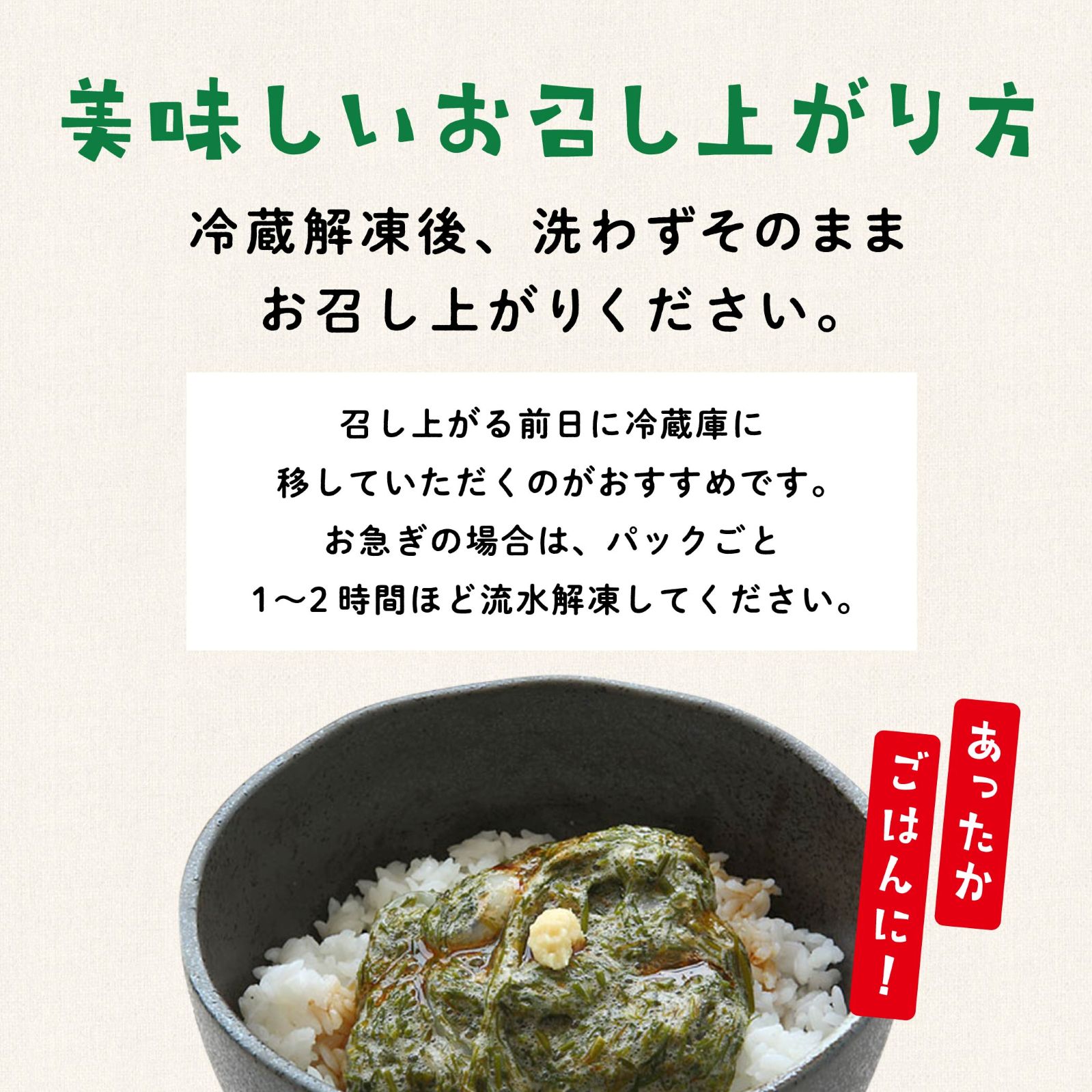 【お召し上がり方】「ギバサひめ」は湯通し・味付け済みなので、冷蔵庫で解凍後、洗わずにそのままお召し上がりいただけます。めんつゆで味付けしてありますので、よくかき混ぜてから熱々のご飯や冷奴にかけてお楽しみください。お好みでわさびや生姜を添えるのもおすすめです。海鮮丼やネバネバ丼(納豆、オクラ、なめこ、とろろなどと)、海鮮サラダ、酢の物など、様々な料理にご活用いただけます。
