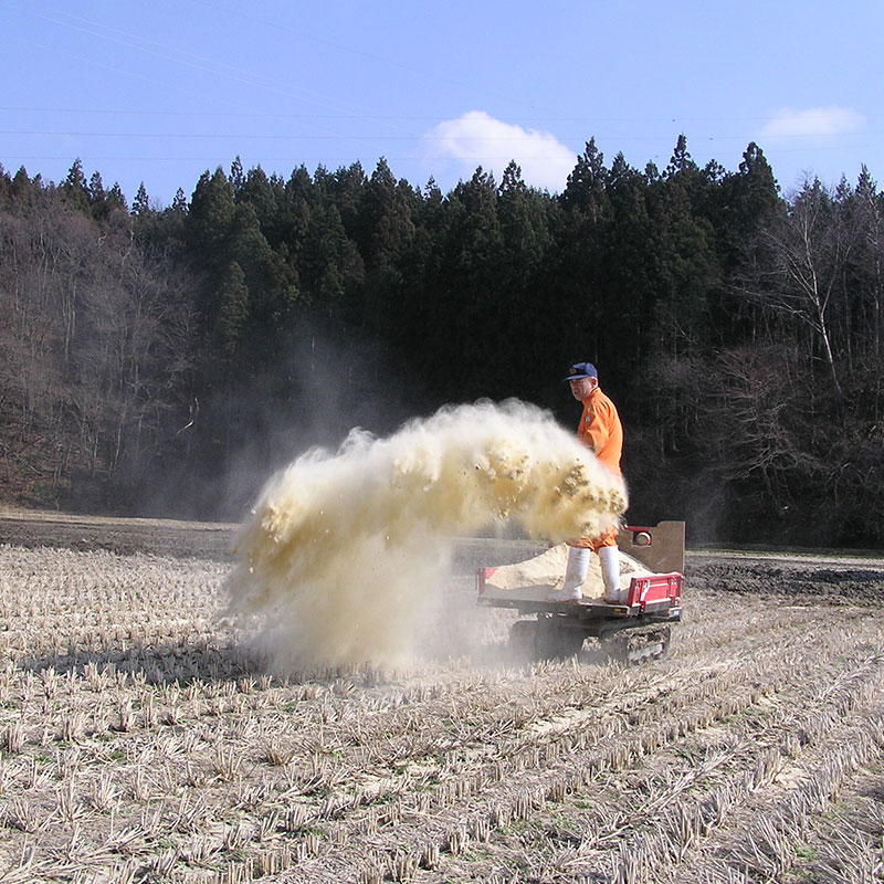 - 当社契約農家が田んぼに米ぬかをまき、化学肥料を減量し作った自然な栄養たっぷりで育ったお米です。(画像3枚目が米ぬかを撒いている様子です)